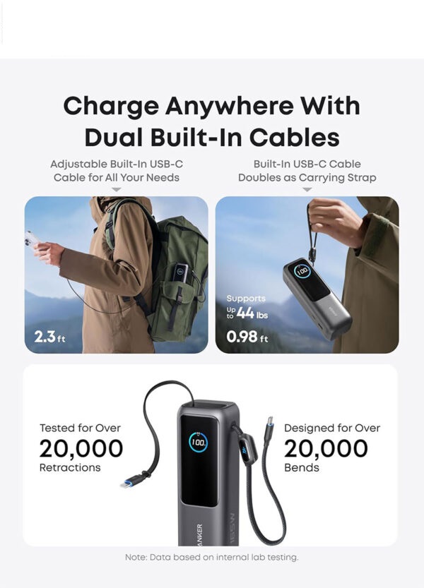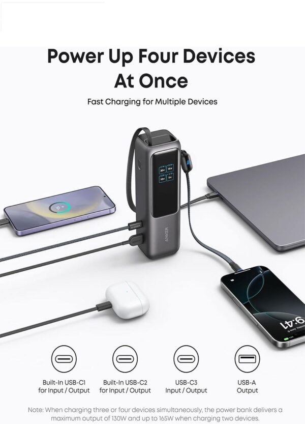 پاوربانک انکر ۱۶۵وات// Anker Zolo PowerBank 25K 165W Built-In USB-C مدل A1695